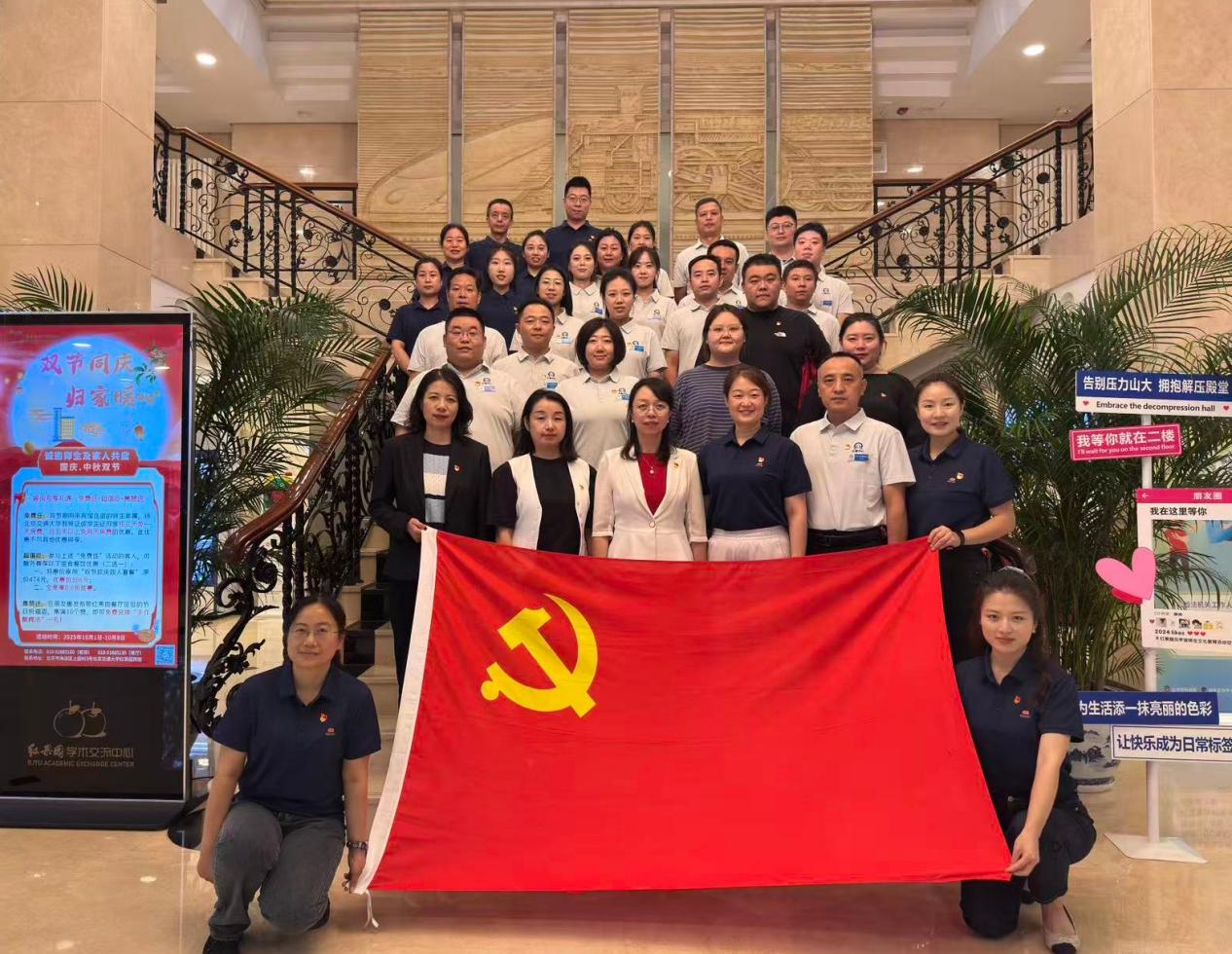 2025年9月26日,培训中心党支部、公寓中心党支部、红果园中心党支部在红果园三层多功能厅联合开展“回顾峥嵘岁月 喜迎国庆盛典”主题党日活动,各支部党员、积极分子共30余人齐聚一堂,以红色文化浸润初心,以竞技互动凝聚力量,共同迎接新中国成立76周年。