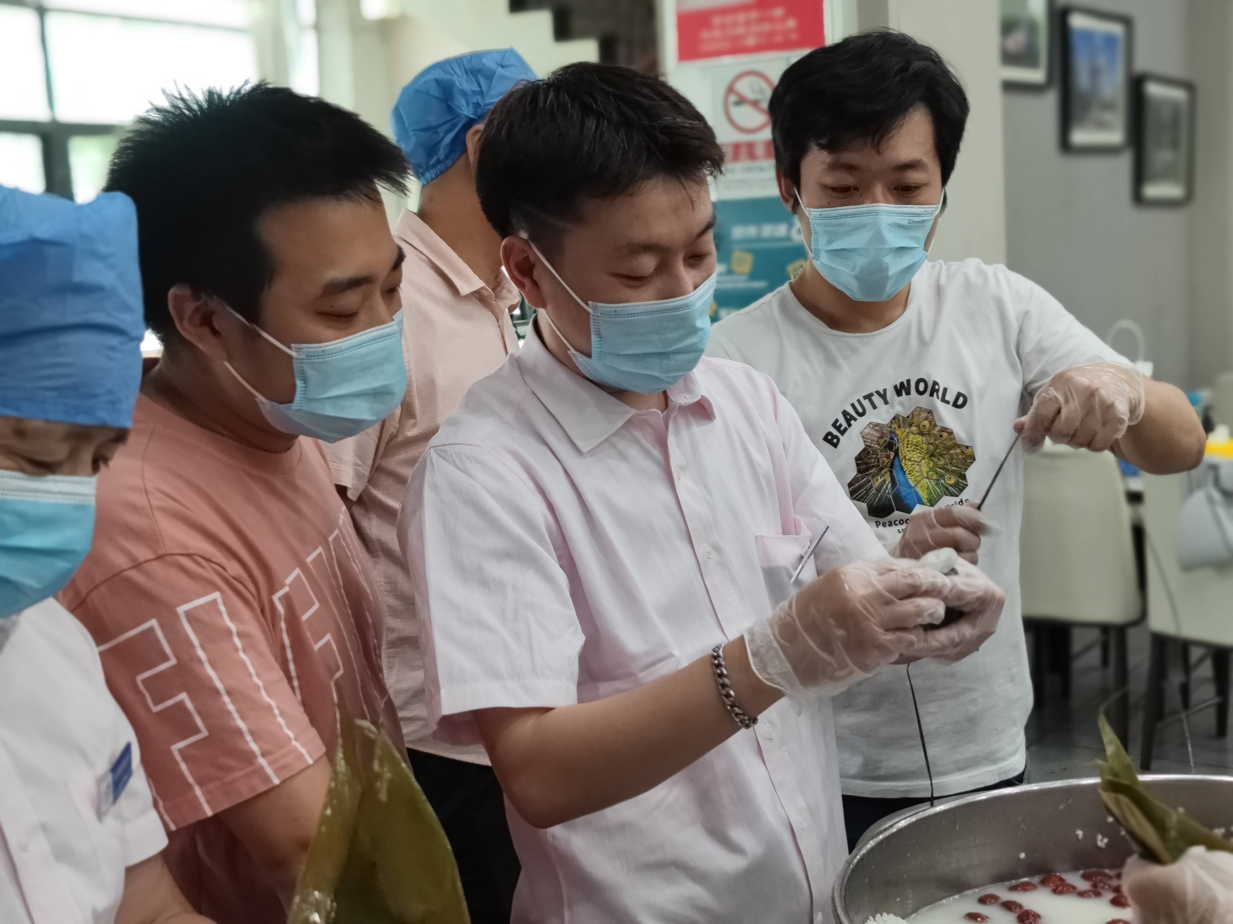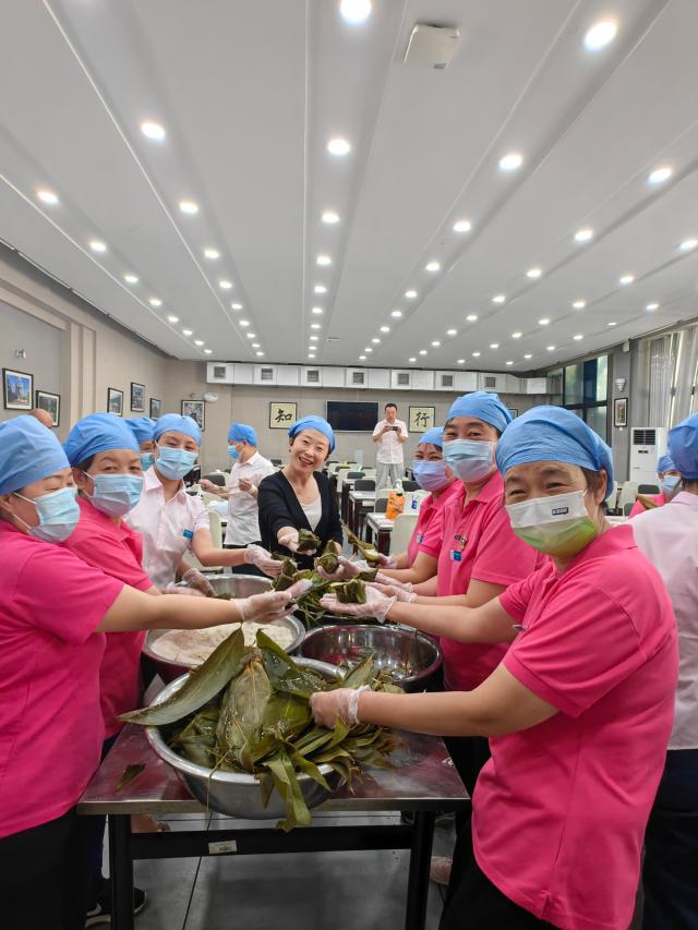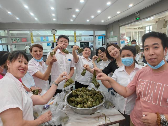 大家欢聚在留园餐厅,桌子上摆满了提前泡好的粽叶和糯米,折粽叶,填糯米,放进自己喜欢的馅料,上下折叠,扎线,一个粽子包好啦!在场的所有人都跃跃欲试,学会的员工主动当起了师傅,现场教学,一双双巧手在欢声笑语中上下翻飞,大家都包的不亦乐乎。 共计40余人参加了此次活动,在不到3个小时的时间里,包了近800个粽子并分发给了中心全体员工。同时,针对未到现场的员工也通过扫描二维码参与了“端午知识问答”的线上活动。通过答题了解“端午”这一传统节日的相关知识。
