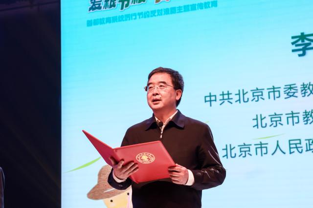 李奕与大家一起发出了“爱粮节粮,我们先行”的响亮倡议,并对全市教育系统提出了厉行节约、教育先行的具体希望。他指出,各区各校要高度重视、再接再厉,持续深化教育引导,建立长效机制,培养学生良好习惯;广大学生要持之以恒、从自身做起,践行节俭健康的生活方式;全市教育系统要坚持不懈、久久为功,大力继承和弘扬中华民族勤俭节约的传统美德,积极助力首都文明新风尚。