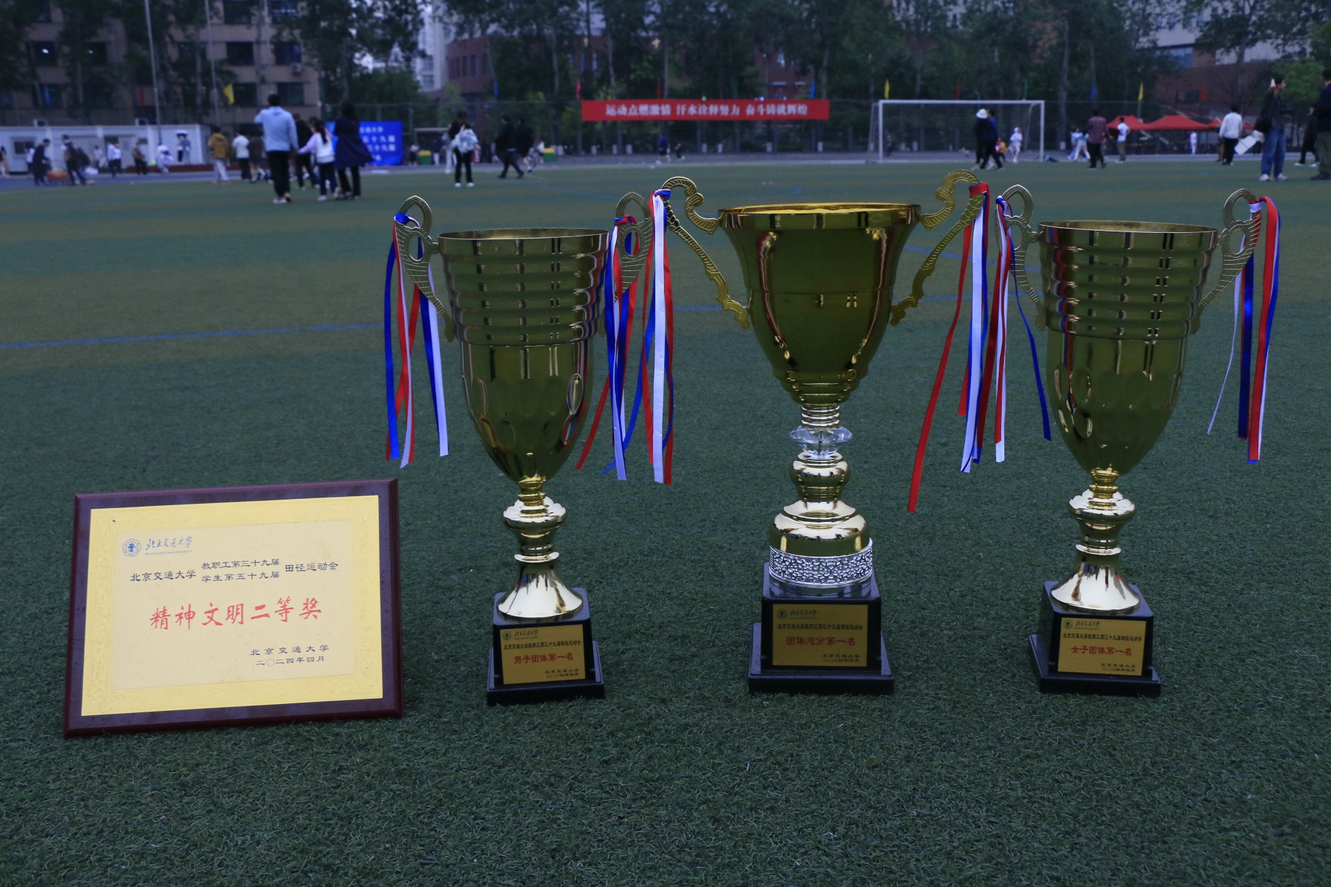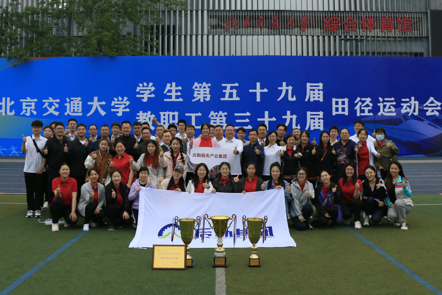 2024年4月26日、27日,北京交通大学学生第五十九届、教职工第三十九届田径运动会在主校区西操场隆重举行。后勤集团荣获教职工团体总分第一名、女子团体第一名、男子团体第一名以及精神文明二等奖的好成绩。现已连续十七届摘得校运动会教职工团体总分第一名的桂冠。