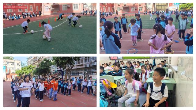在幼儿园和小学老师们前期共同研讨与精心策划下,本次的小学畅游活动内容丰富多彩,体验形式多样:孩子们在操场上,观看和体验了升旗仪式。在庄严的升旗仪式中,幼儿园小朋友和小学生们一起身姿挺拔,面向国旗行注目礼,非常神气!在国旗下表演环节,哥哥姐姐用优美的舞蹈欢迎幼儿园小朋友们的到来,还给弟弟妹妹介绍了关于地震的安全小知识,让每一位小朋友收获满满;课堂体验活动涵盖了很多学科内容,其中包括数学、语文、英语、音乐、美术、科学、道法、体育等,小朋友自主选择了最喜欢的课堂内容。在亲手操作、教学互动中,小朋友们感受到了小学活动的有趣、老师们的有心、哥哥姐姐们的有爱;在教室里,小朋友还变身成为小记者,针对他们关心的小学学习生活问题,采访哥哥姐姐;在老师的带领下,小朋友们还参观了小学的校园环境,操场上各种各样的体育器材、楼道里丰富的课间活动材料、多功能教室里多样的教学环境,吸引着小朋友的目光,让他们对小学生活充满了期待!