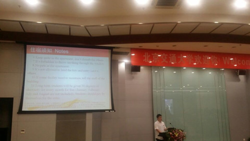 后勤集团留学生公寓一直是留学生在交大学习和生活的主要场所之一,安全稳定工作不容忽视。8月31日下午,留学生生活服务中心在新生开学典礼上召开了新生宿舍安全教育培训会。