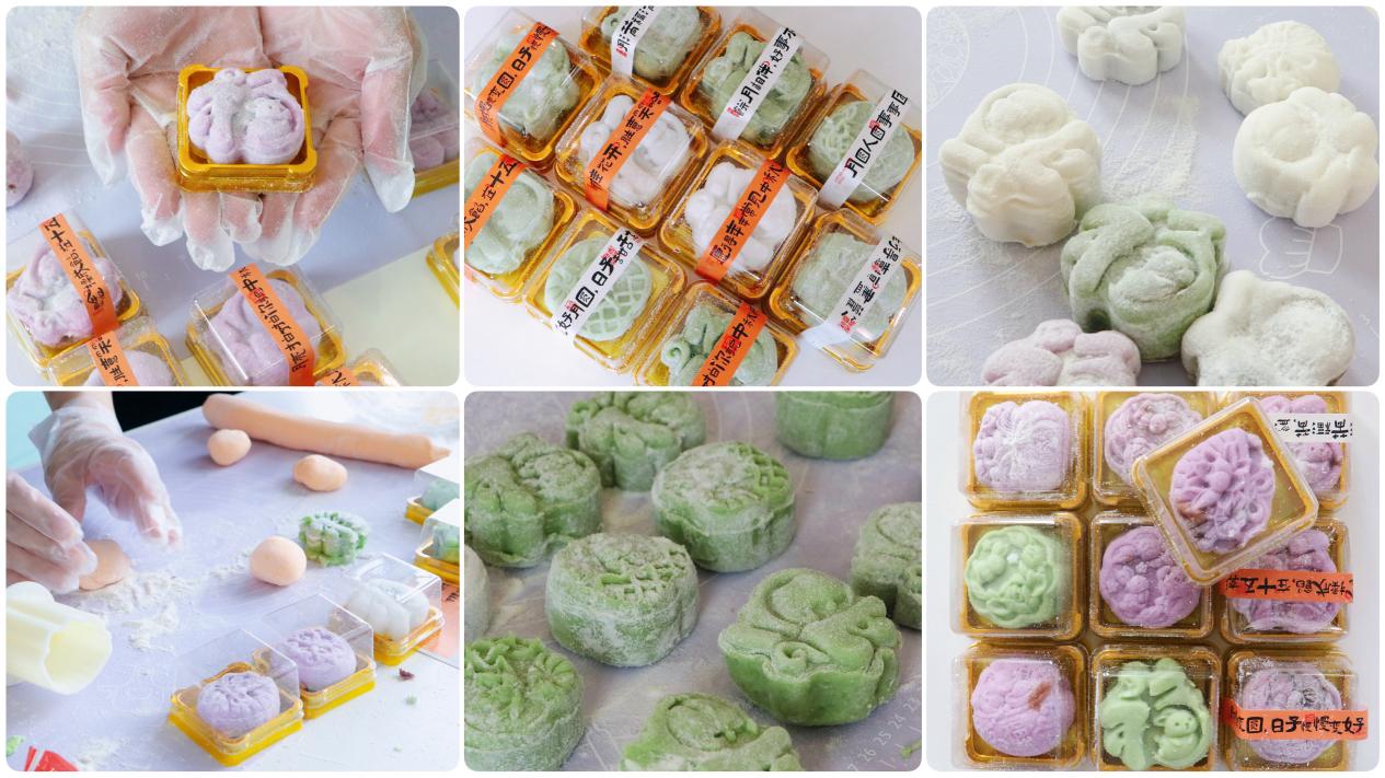 最受客户青睐的当属本次特色项目区——手工冰皮月饼制作区域。每张桌上配备冰皮粉、馅料、模具等专业烘焙物料,搭配时令茶饮,被邀师生、客户两人一组,在中心工作人员指导下默契配合,揉面团、包馅料、压模具,不一会儿,一个个造型精致、口感软糯的冰皮月饼便新鲜出炉。现场提供定制包装盒,成品既可即时品尝,亦可作为伴手礼带走。